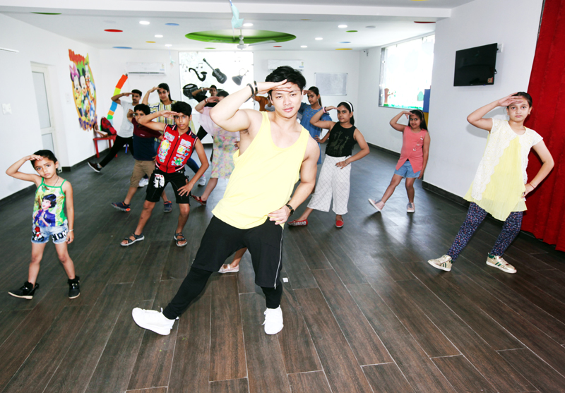 Renowned dancer Sarang Rai teaching dance moves to children during a dance workshop at MMI Preschool, Jammu. -Excelsior/Rakesh