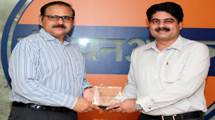 Representative from Association for Talent Development sharing dice with representative from Indian Oil after recognizing its Project Chetna.