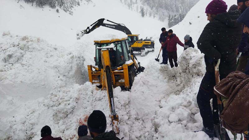 Rescue operations being carried out at Sonamarg for the trapped avalanche victims. -Excelsior/Shakeel