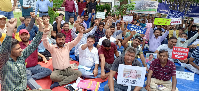 The employees are pretesting at Ambedkar Chowk for last 123 days. Since the situation in the Kashmir valley is still not conducive for these employees to resume their duties in the valley.