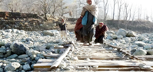 Residents of Gutroo village cross temporary wooden bridge over Bradi-Angan stream in Tral. —Excelsior/ Younis Khaliq By Daily Excelsior - December 19, 2017 Share FacebookTwitterWhatsAppPinterestLinkedinCopy URLTelegramEmailTumblrReddItPrintKoo Residents of Gutroo village cross temporary wooden bridge over Bradi-Angan stream in Tral. —Excelsior/ Younis Khaliq Residents of Gutroo village cross temporary wooden bridge over Bradi-Angan stream in Tral. —Excelsior/ Younis Khaliq Follow our WhatsApp channel