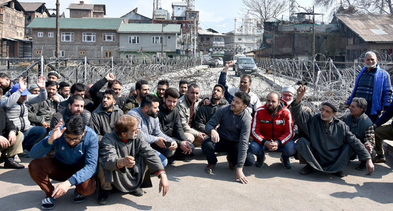 The residents today assembled near the bridge and held a peaceful sit-in against the blocking of the bridge and demanded its immediate reopening. In absence of the bridge, residents said, they are forced to take longer detours for healthcare, education and business purposes as the majority of these institutions are situated on the other side of the Jhelum.