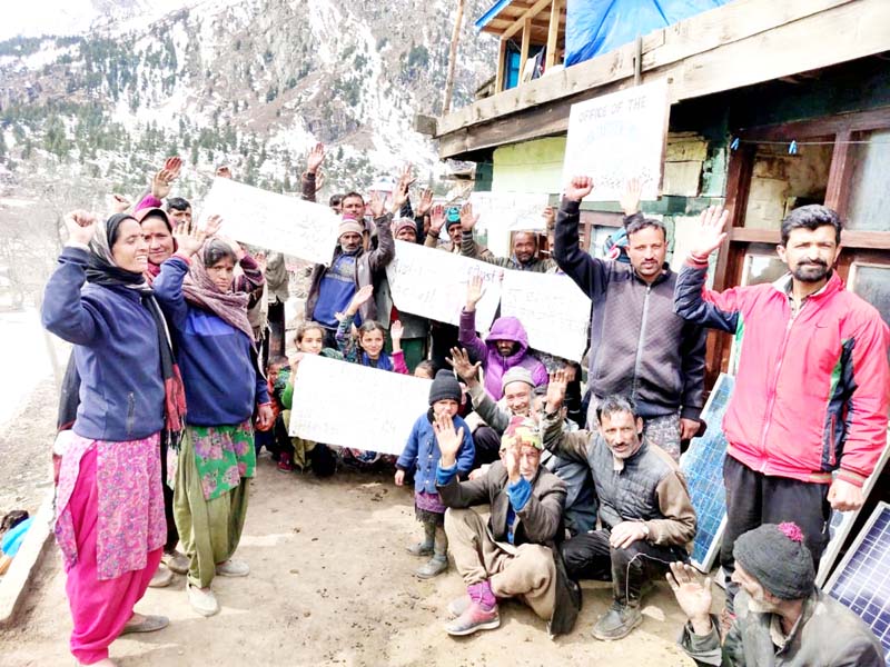 KISHTWAR, Mar 12: The residents held protest against non-availability of electricity and mobile network.