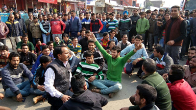 Amid slogans, the protesters blocked the vehicular movement on the Jammu-Pathankote National Highway.