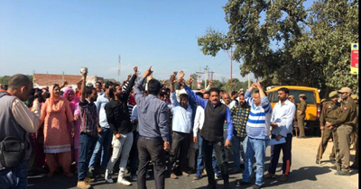 Residents of Raipur-Domana protesting against dumping of garbage in the area.