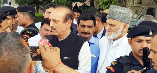 Senior Congress leader Sham Lal Sharma, Nawang Rigzin Jora, Ghulam Mohammad Saroori, Raman Bhalla, Manohar Lal Sharma, Chowdhary Mohd Akram and others accompanied Azad.