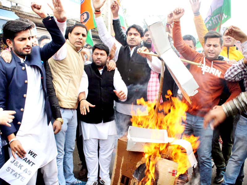 JAMMU, Nov 15: Pradesh Youth Congress (PYC), J&K held protest against the BJP led Government at the centre for downgrading the J&K State into two Union Territories.
