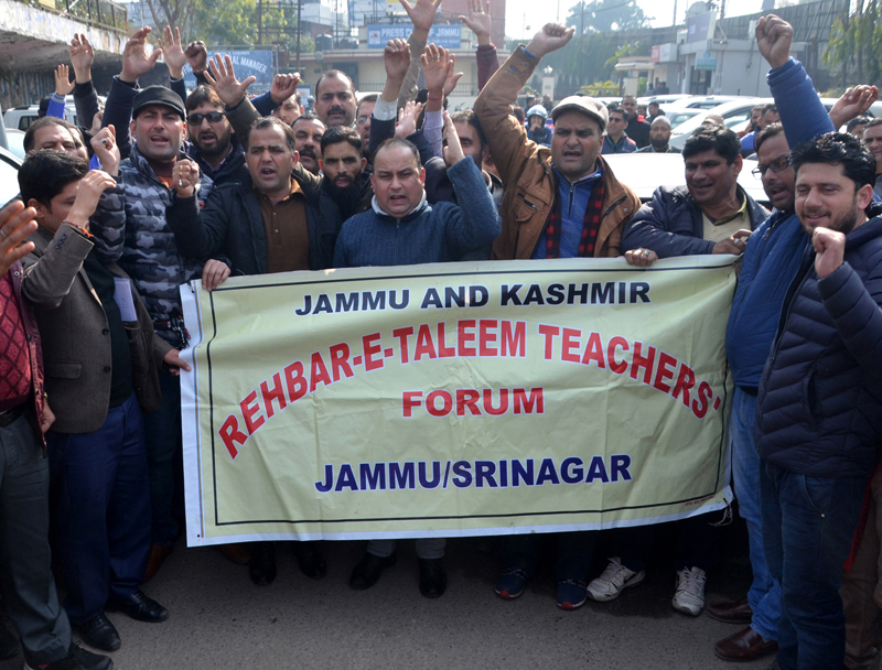 JAMMU, Jan 16: Up in arms against the IGNOU authorities in Jammu and Kashmir, J&K ReT Teachers’ Forum held a strong protest, here today.