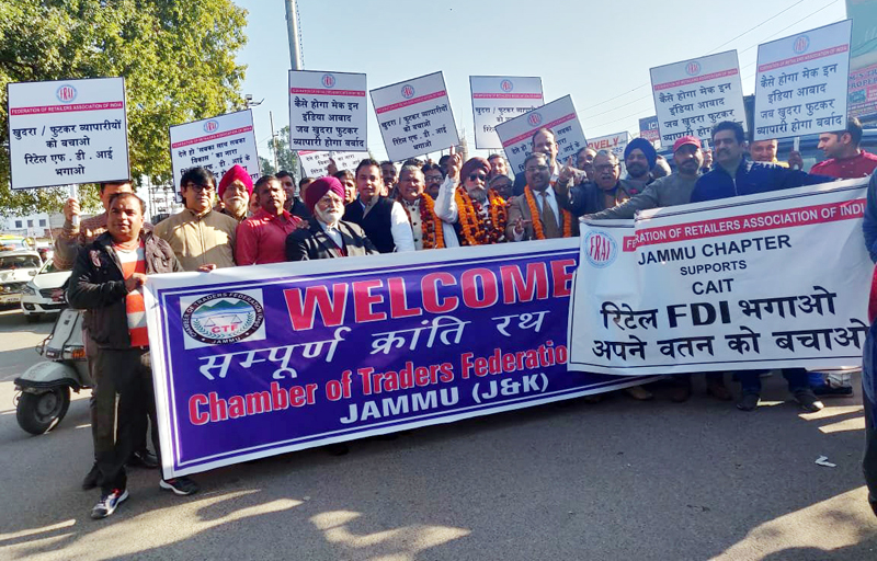 JAMMU, Dec 15: Federation of Retailer Association of India (FRAI) has extended support to Confederation of All Indian Traders’ (CAIT) ‘Rath Yatra’ which entered Jammu on Friday.