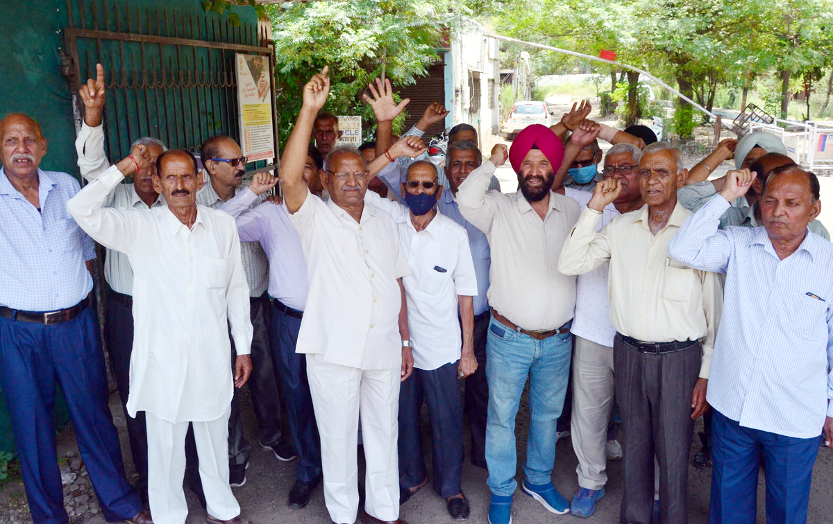 JAMMU, June 5: The J&K Police, Fire and Emergency Services and Auxiliary Police retired personnel (pensioners) held protest demonstration near Press Club, Jammu today alleging discrimination with them by the J&K Administration.