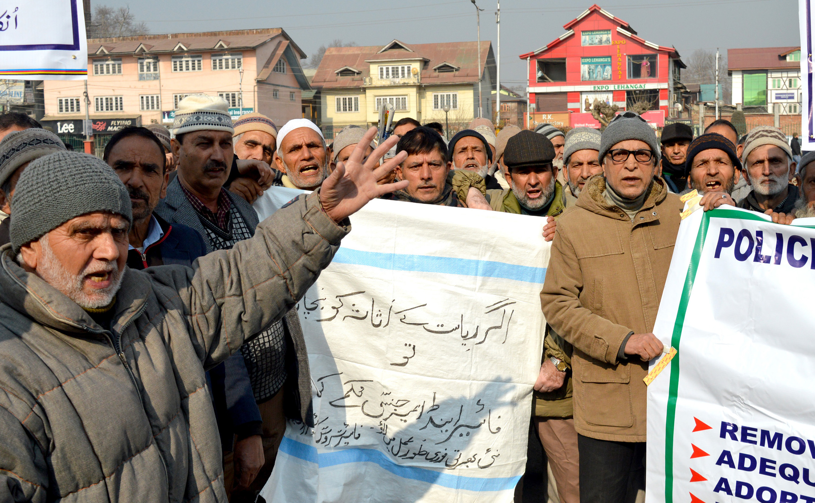 Retired Police Officers protesting at Srinagar on Saturday. -Excelsior/Shakeel By Daily Excelsior - January 7, 2018 Share FacebookTwitterWhatsAppPinterestLinkedinCopy URLTelegramEmailTumblrReddItPrintKoo Retired Police Officers protesting at Srinagar on Saturday. -Excelsior/Shakeel Retired Police Officers protesting at Srinagar on Saturday. -Excelsior/Shakeel Follow our WhatsApp channel