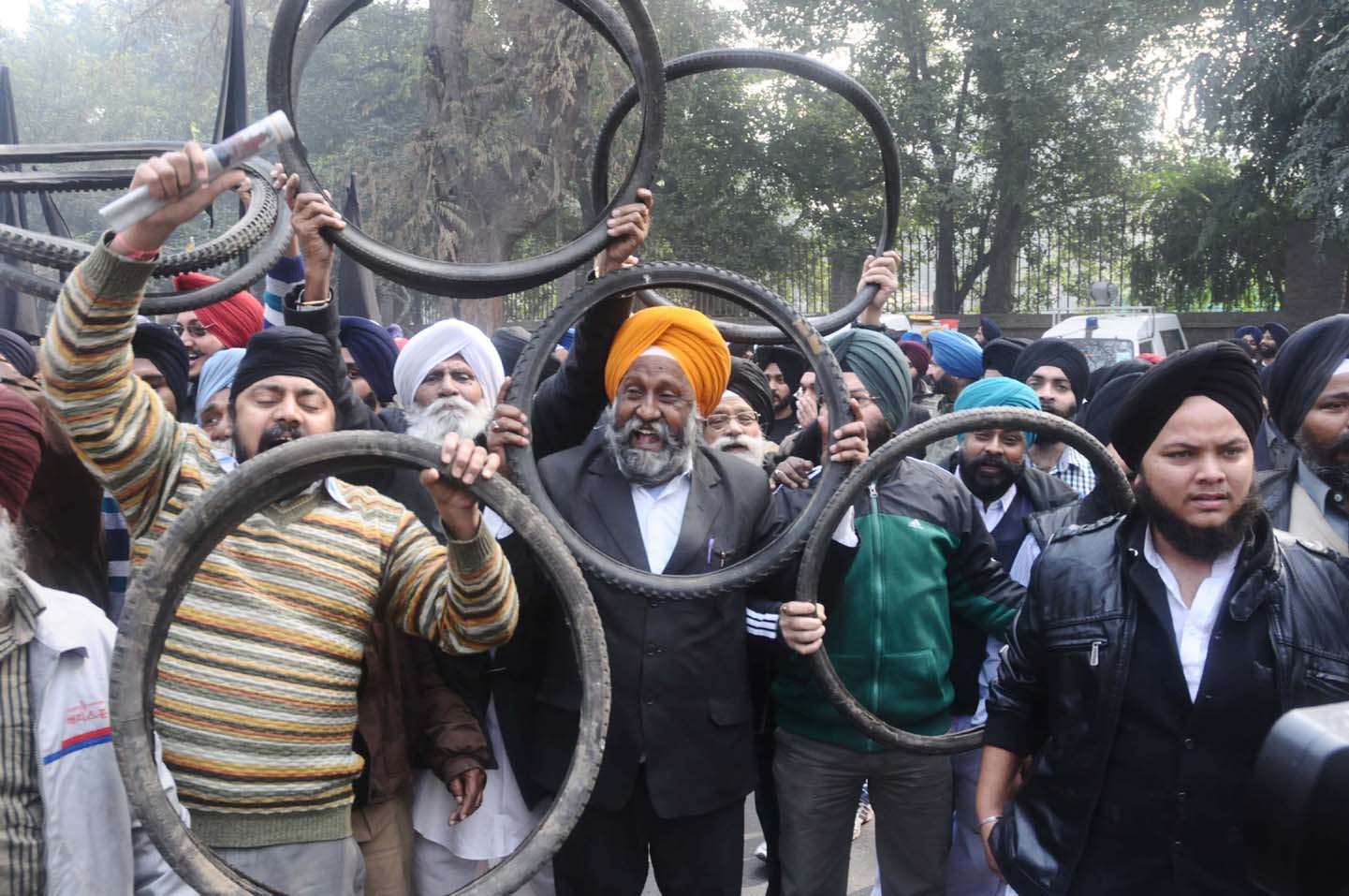 Several Sikh groups today staged a protest outside the Congress headquarters at 24, Akbar Road and demanded that Congress Vice President Rahul Gandhi reveal the names of party members who were involved in the 1984 anti-Sikh riots.