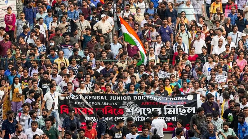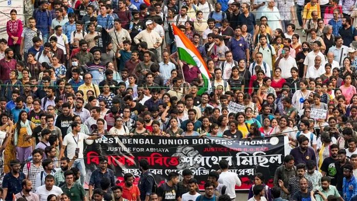 Coinciding with the junior doctors’ rally, a massive torch rally by citizens covering 42 km took place in the city on Friday evening, demanding justice for the rape-murder victim.