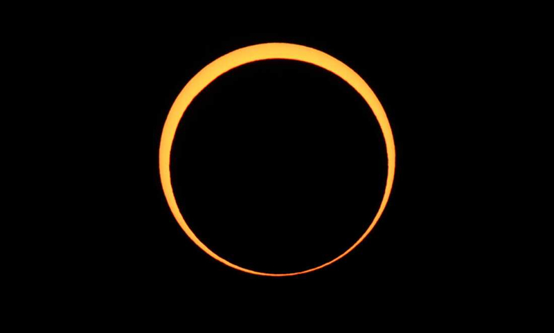 CANCUN (México), Oct 15: First came the darkening skies, then the crescent-shaped shadows on the ground, and finally an eruption of cheers by crowds that gathered Saturday along the narrow path of a rare “ring of fire” eclipse of the sun.