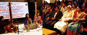 The first of its kind in winter capital, the concert held at Brig. Rajinder Singh Auditorium, University of Jammu, figured promising women quartet which included Geetika Umedkar Masurkar, Kakli Mukerjee, both vocalists, Chitrangana Agle Reshwal, the first ever women Pakhawaj player and Dr Radhika Umedkar Budhkar, first ever Vichitra Veena player of India.