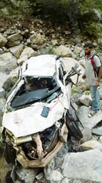 The deceased were identified as Mohd Ashraf, son of Mohd Abdulla of Jamslan and his one year old son Adnan. Mohd Ashraf was driving the car and he along with his son died on the spot while others sustained critical injuries. They were rushed to District Hospital Reasi and their condition was stated to be serious.