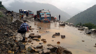 Road badly damaged at Koda Pani, Assar in Doda. -Excelsior/Tilak Raj