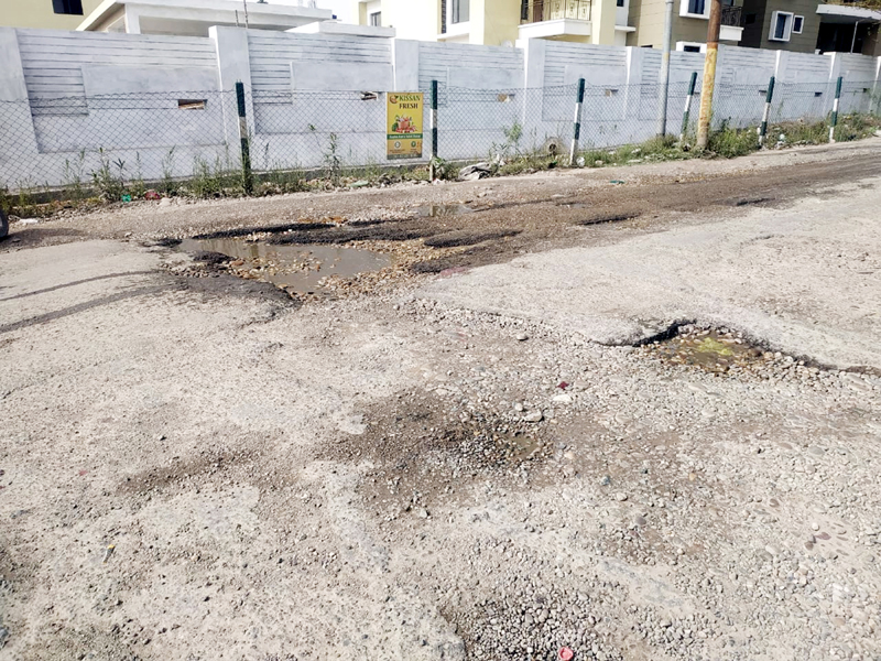 The residents are expressing their anguish over the poor maintenance of road by the authorities. Potholes on the roads are creating panic among the motorists. Instead of repeated reminders, the officials of the respective departments have not been taking any action to fill up the pits and potholes, the residents said.