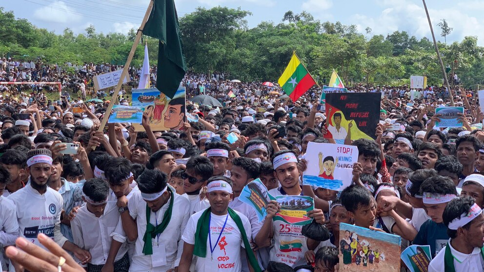 COX’S BAZAR(Bangladesh), Aug 25: Tens of thousands of Rohingya refugees from Myanmar living in dozens of camps in Bangladesh marked the eighth anniversary of their mass exodus, demanding a safe return to their previous home in Rakhine state.