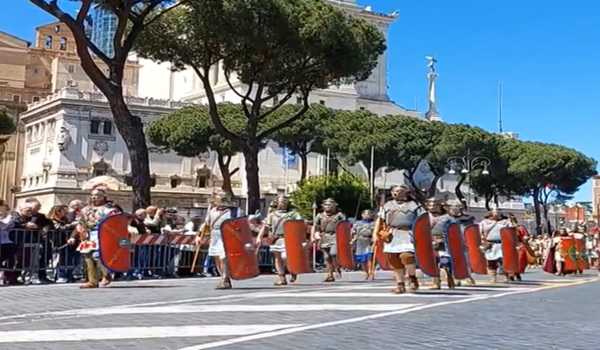 On Sunday, the city erupted with concerts, exhibits, ceremonies and a parade of more than 2,000 people marching as legionaries, centurions, senators, gladiators, vestals, priestesses, and nobles, all dressed in full Roman-era costumes.