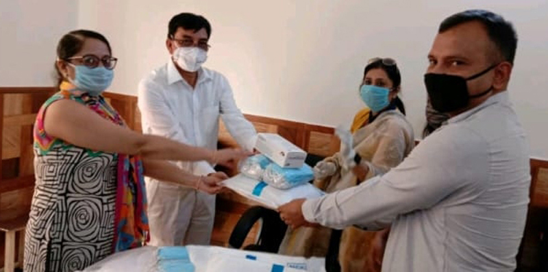 Members of Rotary Club Jammu Midtown handed over PPE kits, masks etc to doctors Government Hospital Sarwal on Friday.