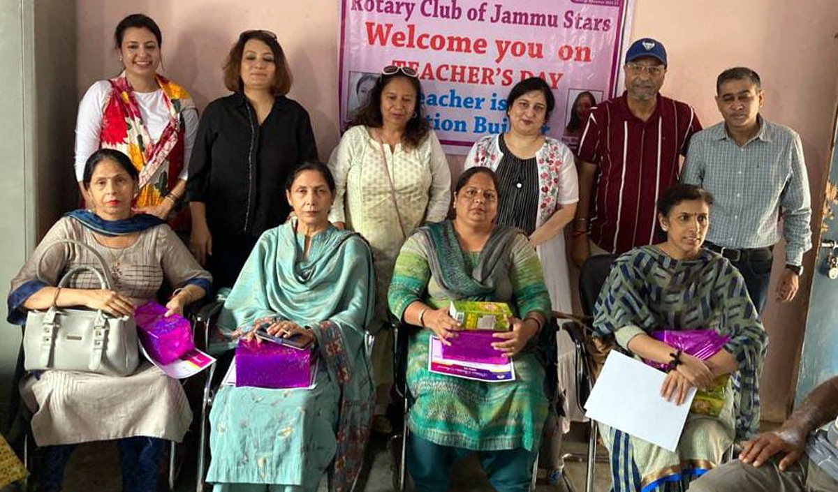JAMMU, Sept 10: The Rotary Club of Jammu Stars delegation visited at the School for Hearing and Handicapped (Deaf & Dumb) and honoured teachers.