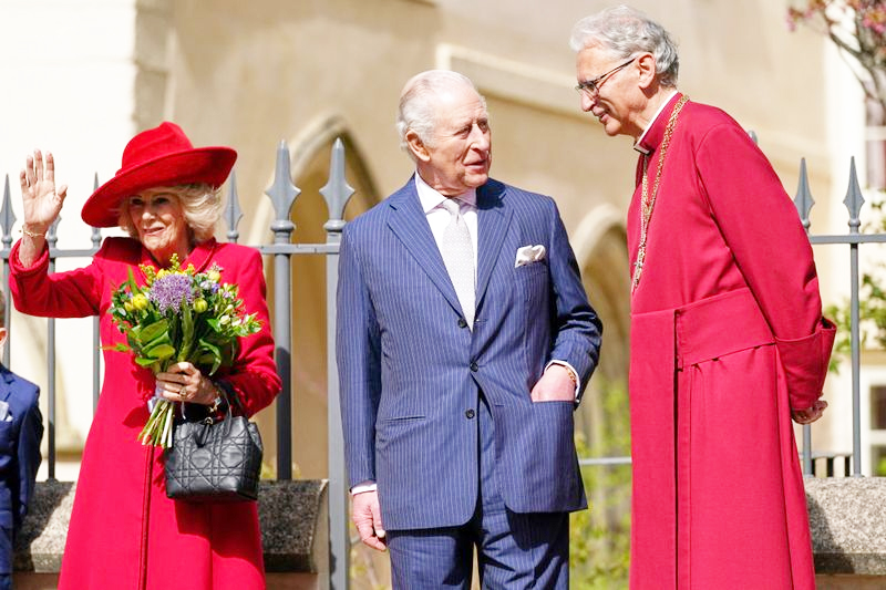 LONDON, Apr 5 : Britain’s King Charles III and his wife, Queen Camilla, were joined by senior members of the royal family for the annual Easter Sunday church service at St. George’s Chapel in Windsor Castle.