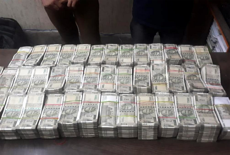 Upon checking, the team found bundles of 500, 100, and 200 rupee notes in a backpack each of the two occupants sitting at the back were carrying.