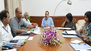 Union Minister Dr Jitendra Singh presiding over a meeting of DoNER Ministry at New Delhi on Wednesday.
