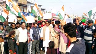JAMMU, Dec 18: Terming the Rs 2,000 crore development package for displaced people of Pakistan occupied Kashmir (PoK) approved by Prime Minister Narendra Modi as great cry little wool, Congress workers and PoK refugees today held strong protest against this meager package at Karan Bagh Chowk in Gandhi Nagar constituency today.