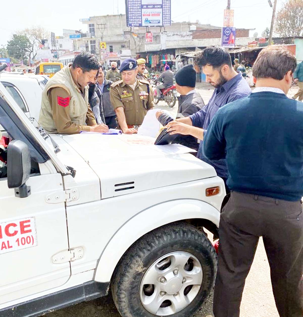 Special Police teams led by SDPO RS Pura Shabir Khan with SHOs of RS Pura, Bishnah, Arnia and Miran Sahib Police Station were seen challaning and seizing the traffic violators.