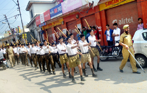 Bhaderwah, Oct 2: Rashtriya Swayamsevak Sangh (RSS) today took out traditional ‘Path-Sanchalan’ in Doda.