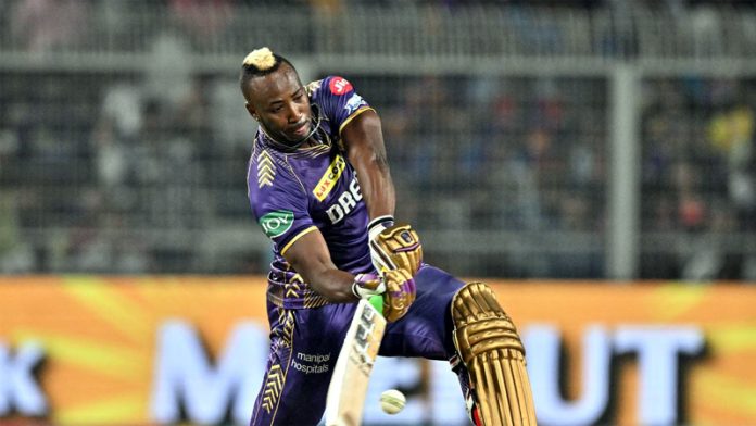 Russell’s brutal unbeaten 64 off 25 balls with three fours and seven sixes and Phil Salt’s more pragmatic 54 off 40 balls guided KKR to 208 for seven.