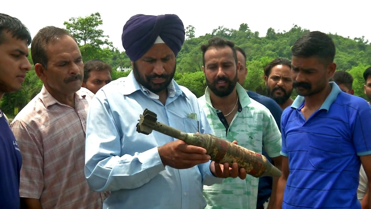 Officials said the shell, believed to have been washed away in Basantar river from a forward village along the International border, had reached the village during dumping of minor minerals for some construction work.