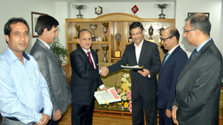 S S Sehgal, Executive President J&K Bank and Sanjay Datta, partner Delloitte Touche Tohmatsu India exchanging documents of agreement.