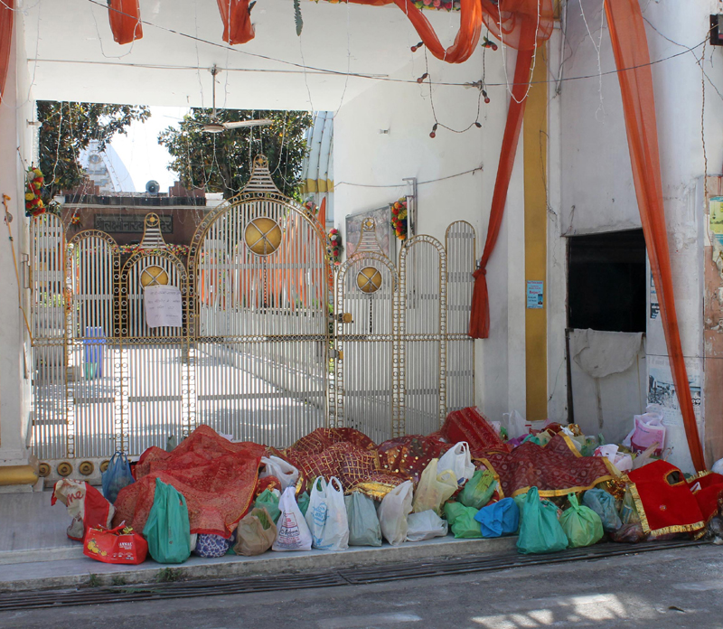 ‘Saakhs’ kept in bags inside a temple by the devotees in Jammu. -Excelsior/Rakesh