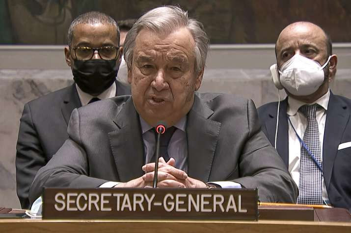 UNITED NATIONS, Feb 24: UN Secretary General Antonio Guterres has termed Russian President Vladimir Putin announcement of a special military operation in Ukraine as the “saddest moment in my tenure”, while Security Council members blasted the Russian leader for the “unprovoked and unjustified” action and for delivering a “message of war”.