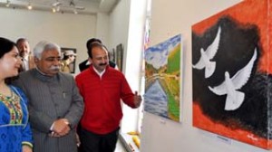 JAMMU, Nov 9: Minister for Labour, Planning and Development Ajay Kumar Sadhotra today inaugurated a two-day exhibition of art at Kala Kendra. The art exhibition includes works of Satish Gupta and subjects encompass topics ranging from aesthetic beauty, nature, divinity, wildlife, still-life etc.