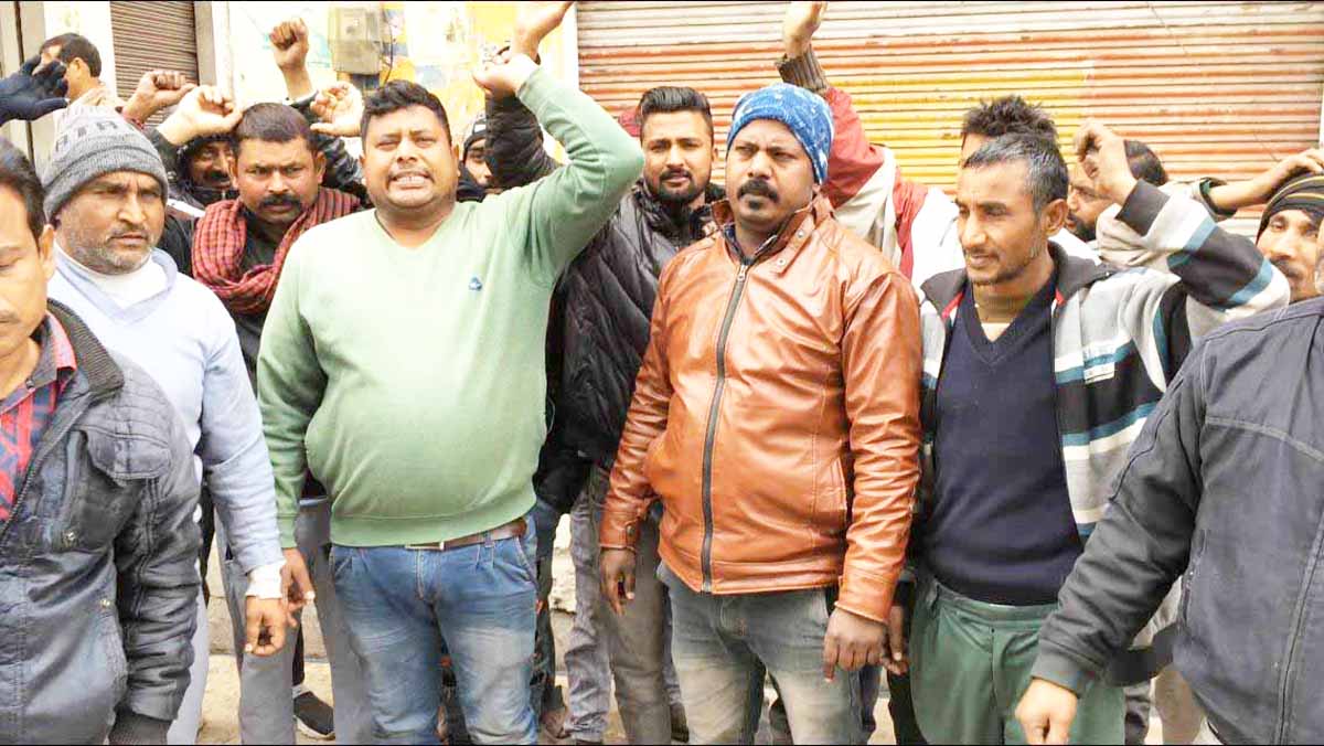 SAMBA, Jan 12: About three dozen Safai Karamcharis of Municipal Committee, Bari Brahmana under the banner Akhil Bharatiya Mazdoor Sangh (ABMS) staged a protest dharna in front of Municipal Committee Office, Bari Brahmana today.