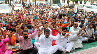 Safai Karamcharis of JMC during a protest at Town Hall in Jammu. —Excelsior/Rakesh By Daily Excelsior - April 10, 2018 Share FacebookTwitterWhatsAppPinterestLinkedinCopy URLTelegramEmailTumblrReddItPrintKoo Safai Karamcharis of JMC during a protest at Town Hall in Jammu. —Excelsior/Rakesh Follow our WhatsApp channel