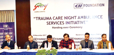CII Foundation handed over two well-equipped ambulances to the district administrations of Baramulla and Bandipora in J&K. The Foundation with support of Godrej and Boyce, initiated trauma care free night ambulance services project to provide quality and timely emergency medical services to the people living in remote and inaccessible geographies in J&K.