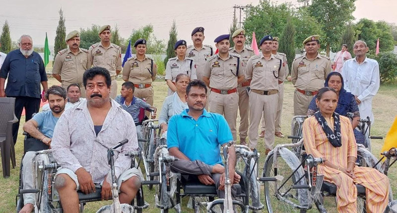 SAMBA, May 13: Continuing its effort to serve society and to reach out the needy people, Samba Police today distributed tri-cycles, wheelchairs, walkers and walking sticks among 85 specially-abled persons of District Samba in a function held at District Police Office, here.