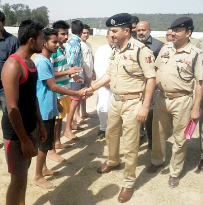 SSP Samba, Joginder Singh and other dignitaries interacting with players during Sports Mela on Wednesday.