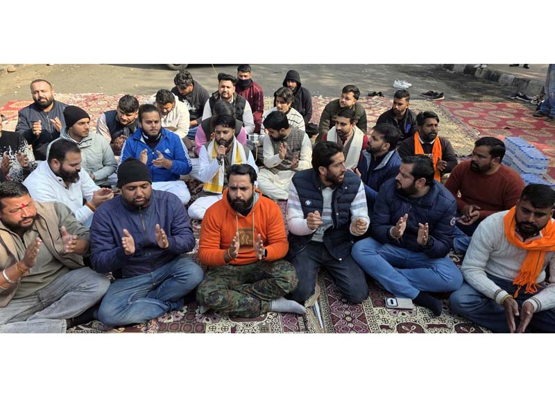 Giving religious colour to the protest, members of the Youth Wing sat near the main gate of the Secretariat and collectively performed a peaceful recitation of the Hanuman Chalisa.