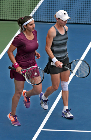 Indian tennis ace Sania Mirza and her Zimbabwean partner Cara Black hardly broke a sweat as they entered the US Open women’s doubles semifinals after their rivals retired midway through the quarterfinal match here.