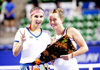 Tokyo, Sept 24: India’s Sania Mirza and her Czech partner Barbora Strycova posted a comfortable straight-set win over unseeded Chinese pair of Chen Liang and Zhaoxuan Yang to lift the Toray Pan Pacific Open title here today.
