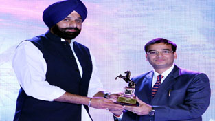 Sanjeev Saraf receiving ‘Times Business Achiever of the North’ award from Bikram Singh Majithia, Minister for Revenue and Rehabilitation, Punjab at Chandigarh.