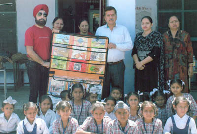 Dr Raminder Jit Singh, Director, The Sara handed over the library kit to Kaushal Kumar, Headmaster of the School.