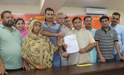 JAMMU, Sept 8: BJP State president & MLA Jammu West, Sat Sharma handed over the appointment letter for the Government job to Dara Singh the elder son of martyr Chamel Singh, who hailed from a border village of Pargwal in Akhnoor of Jammu and was beaten to death in Pakistan’s Kot Lakhpat Jail on January 15, 2013.