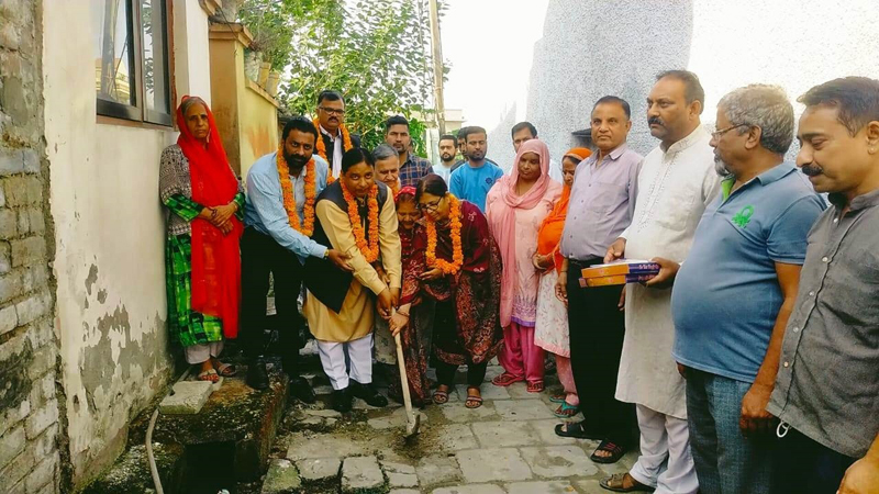 JAMMU, Oct 31: Former Minister and Ex MLA Jammu West, Sat Sharma (CA) along with Corporator, Neelam Nargotra started works for construction of drains at Ward Number 40, Lane 2 Kabir Nagar, Talab Tillo Jammu.